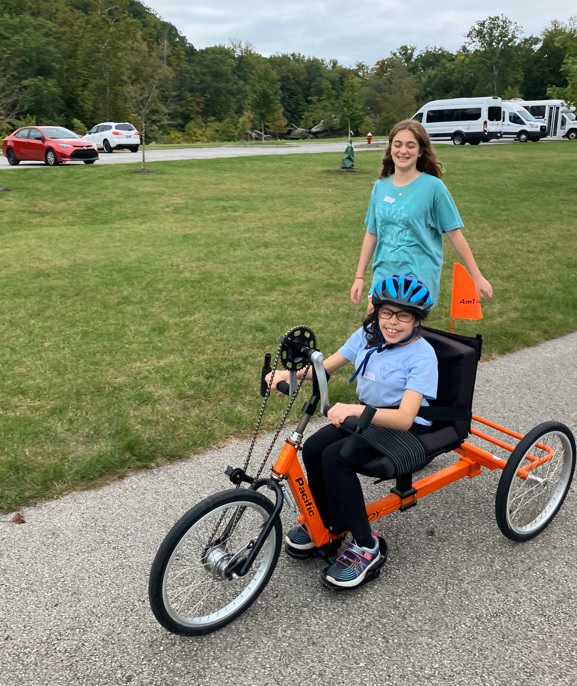 During Geocache & Cycling, participants and volunteers divided into two groups. One group explored the scenic Cascade Park on handcycles, while the other embarked on a geocaching adventure. In the first week, the group followed a hiking mission designed by a YC staff member with fun prompts at each stop, like “Head under the bridge and act like a troll. Don’t stop now, you’re on a roll!” and “Keep following the path to the field of Christmas trees and sing ‘Jingle Bells’ for a festive challenge!” In week two, participants created their own hiking missions, inventing unique clues and tasks for other groups to discover and complete.